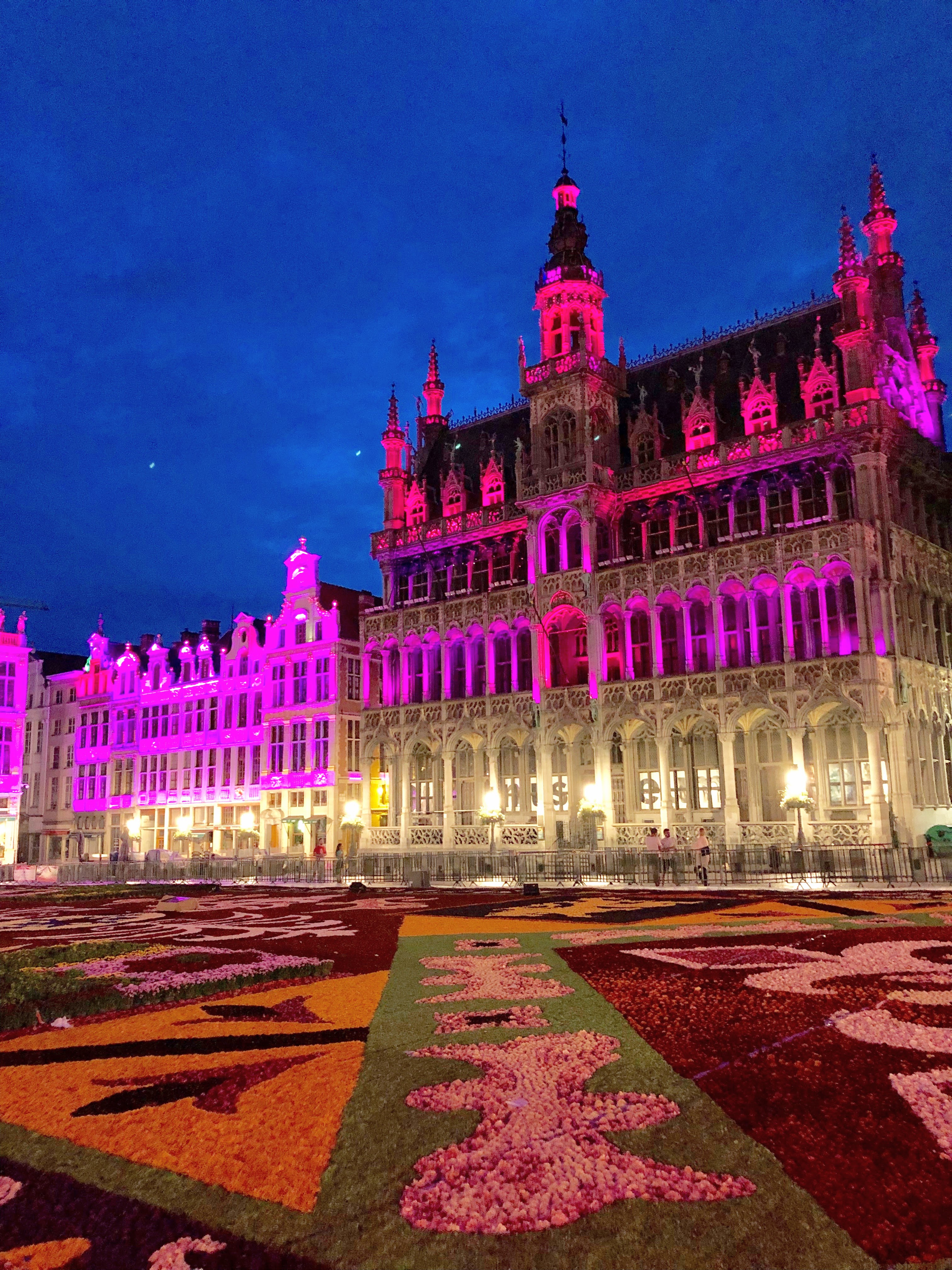 二年に一度、ブリュッセル【世界遺産】グランプラスいっぱいに花の絨毯が広がります!50万本以上のダリアやベゴニアが描く花模様は繊細にして大胆、辺りに漂う花の香りとともに、観る人をしばし別世界へと連れ去ることでしょう。「ヨーロッパ最美の広場」を照らす、夜のライトアップもお見逃しなく!(ブリュッセル無形文化遺産) ※行程2日目、3日目(写真 グランプラス / イメージ)