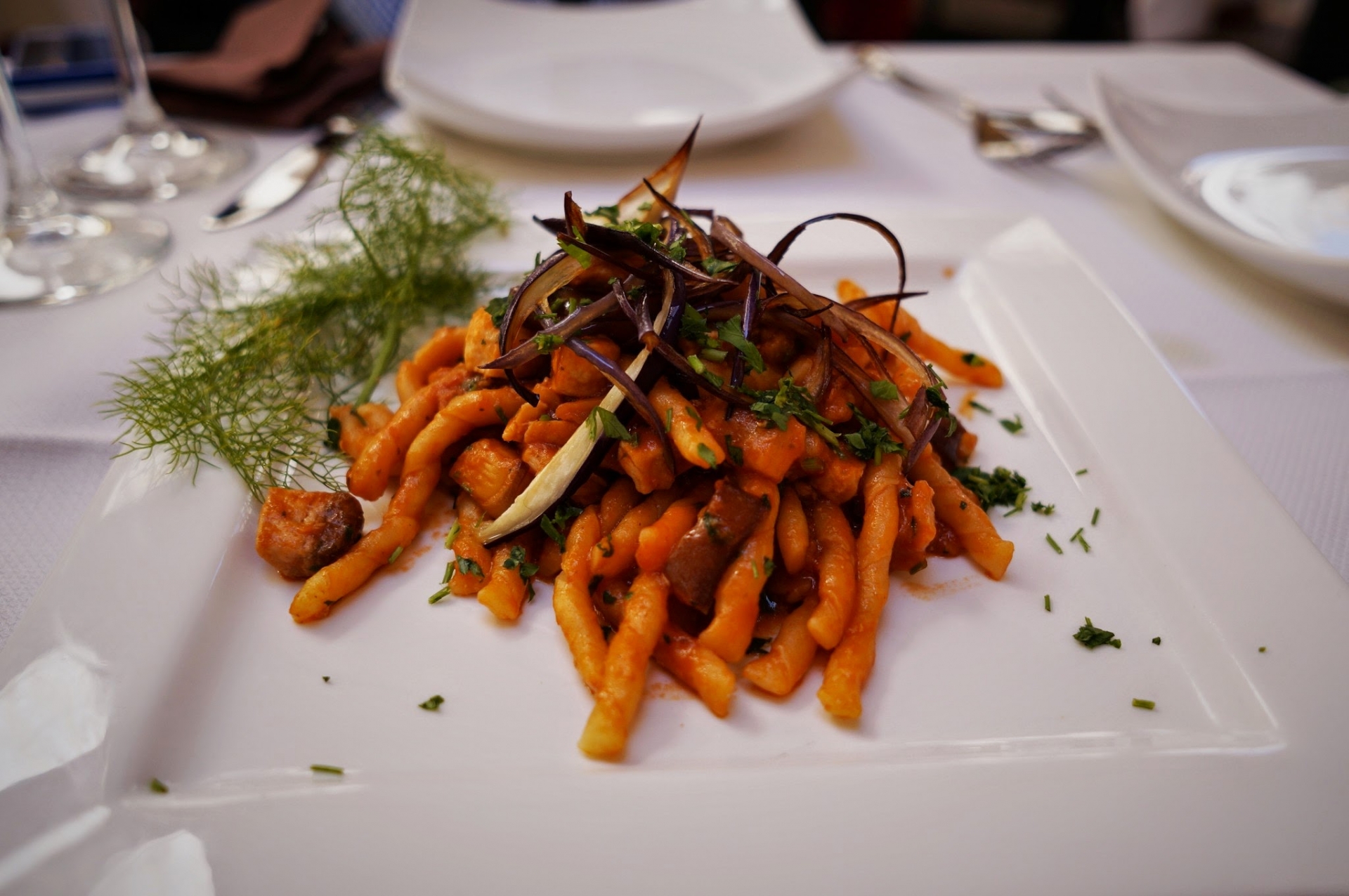シンプルに見えるシチリア名物料理パスタ アッラ ノルマはシチリア島カターニア生まれの大作曲家ベッリーニの有名なオ ペラ『ノルマ』から命名されたと言われ、傑作料理の一つです。
